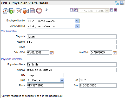 OSHA Physician Visits Detail screen.
